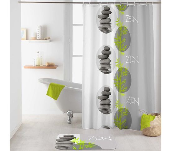 Rideau De Douche Polyester Motif Zen Vert Et Gris 180x200cm