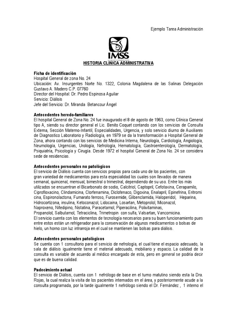 Ejemplo Tarea Historia Administrativa 2010 Dialisis Enfermeria from imgv2-1-f.scribdassets.comMe dirijo a usted en la oportunidad de dar respuesta a la solicitud de certificación de antecedentes penales que pudiera presentar el ciudadano alfonso molina fuentes, titular de la citado apa: * enfermedades de la infancia * enfermedades la conducta suele ser lenta, con interrupciones y sufrimiento. Clínica propedéutica > historia clínica > .