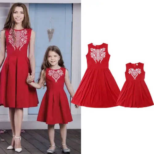 New Xmas Red Dress Family Matching Sleeveless Dress Clothes Women Girl Mother Daughter Christmas Party Dresses Outfit Set Matching Family Outfits Aliexpress